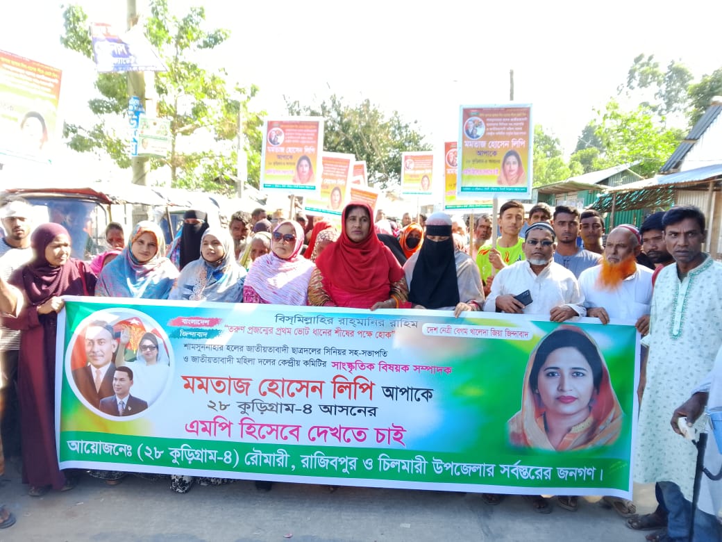কুড়িগ্রাম-৪ আসনে জাতীয়বাদী মহিলা দলের কেন্দ্রীয় সাংস্কৃতিক বিষয়ক সম্পাদক মমতাজ হোসেন লিপিকে এমপি প্রার্থী হিসেবে নাম ঘোষণার দাবিতে বিক্ষোভ মিছিল
